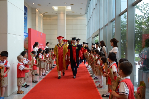 典礼开场序曲:所领导刘恩海、饶长辉带领毕业生沿红毯步入大厅