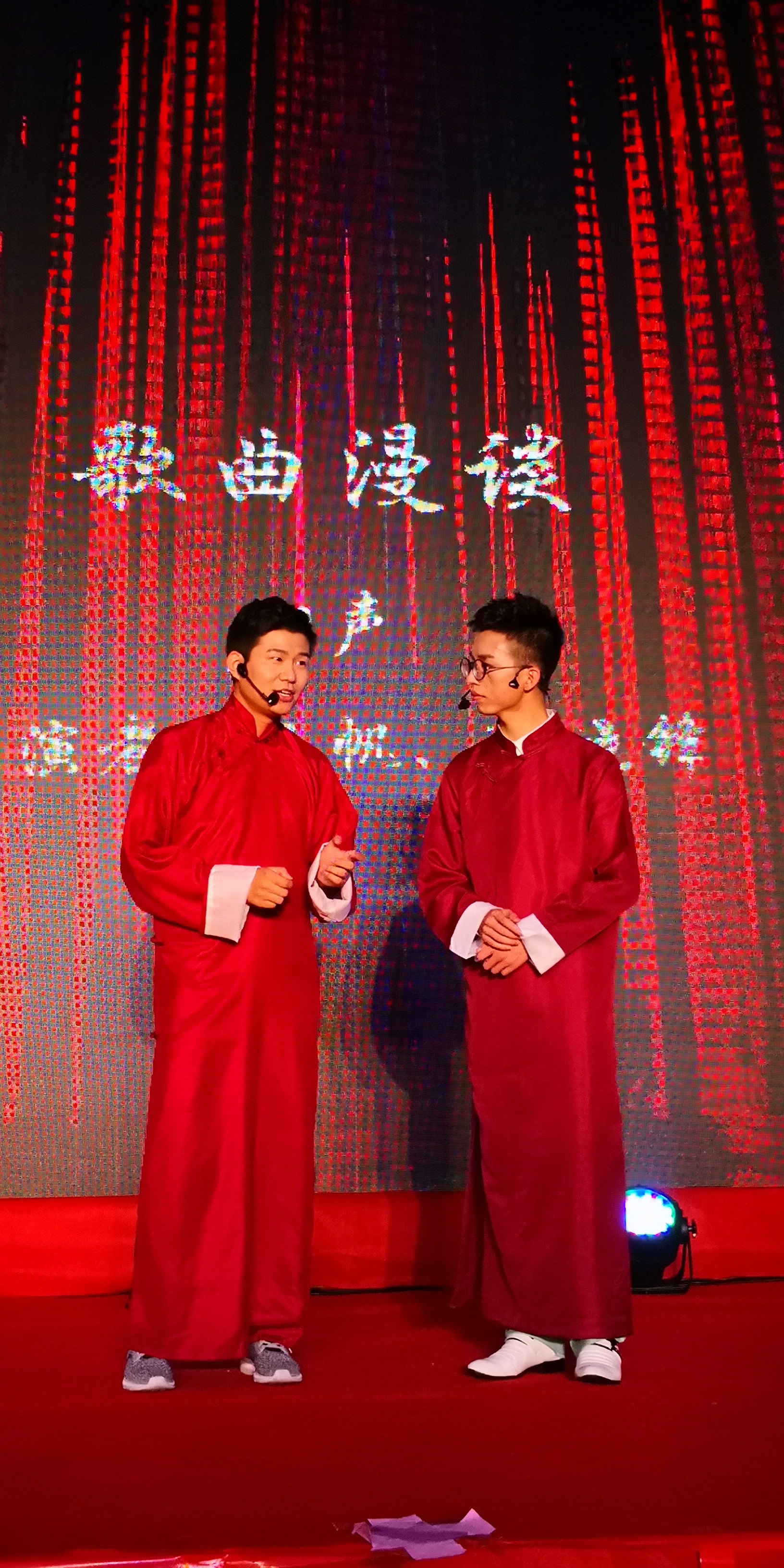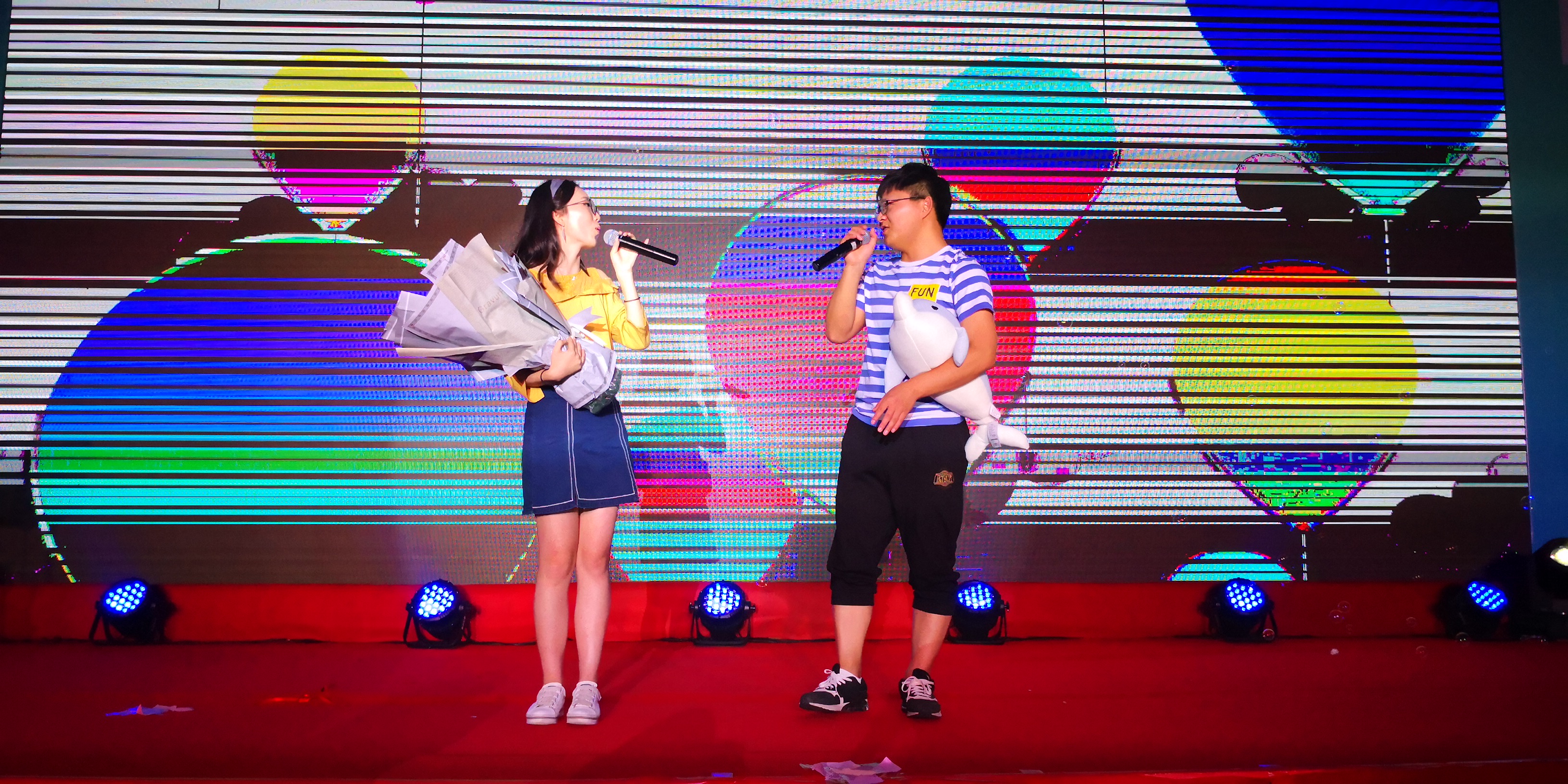 走红毯仪式结束后,晚会随即拉开序幕。两位帅气、靓丽的主持人均由毕业生自己担纲。