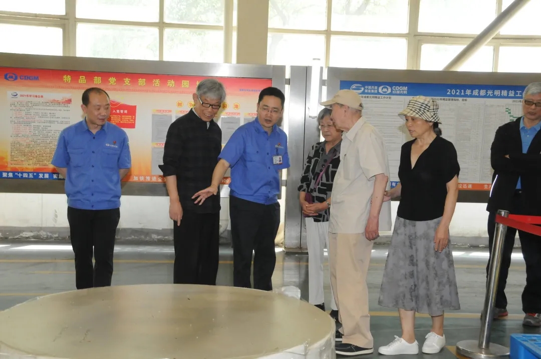 5月11日,所科协22名老专家到成都光明光电股份有限公司(简称光明光电)参观交流并开展党史学习教育。专家们先后参观了该公司在新都的光学冷加工企业、模型压制子公司,在龙泉的本部光学玻璃生产车间、贵金属提纯及加工子公司,详细了解光学玻璃生产、光学元件冷热加工和贵金属提纯加工过程。