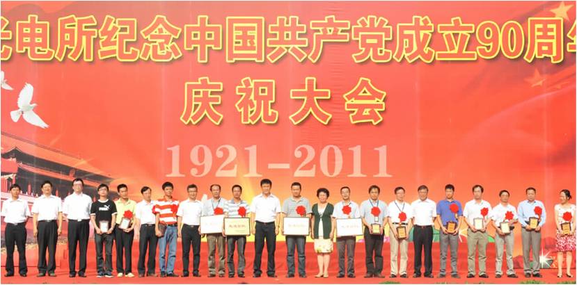 6月28日17时,光电所纪念中国共产党建党90周年庆祝大会暨文艺汇演在光电所牧马山园区隆重举行。大会总结和回顾了我党90年所走过的光辉历程,颂扬了在党的领导下,我国科技创新事业取得的显著成就,同时表彰了在我所“创先争优”工作中涌现出来的一批优秀个人和集体。所领导班子成员和全所党员、职工参加了庆祝大会,党委书记陈胜利同志主持大会。