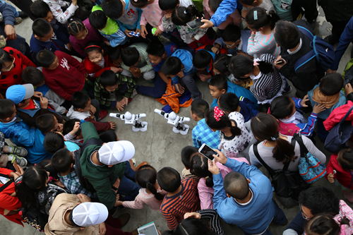 在互动空间,分别设置了测量互动、望远镜互动、生物医学光学互动和科普视频等四个展馆。在圆度误差测量试验中,观众好奇地把水杯拿出来测量,要检测自己的水杯圆不圆。天文望远镜的装配、星图的识别是学生最喜欢的动手体验之一,他们认真听取科普志愿者的讲解,自己动手装配出天文望远镜,通过星图投影仪识别望远镜观察到的四季星空和星云,提出了大量有趣的天文问题,志愿者都一一解答。在生物医学光学互动区,人眼像差测试和眼底相机测试是最受家长欢迎的体验项目之一。大部分家长均是首次通过测量仪观测人眼结构,系统了解各种视力疾病的机理及预防。孩子们排着长龙来体验,每一个孩子测试下来,家长都会急切的问:“孩子眼镜怎么样?有近视、散光吗?有问题吗……”智能机器人的跳舞和拳击表演都会吸引大批孩子来观看,表现出浓厚的兴趣,都会饶有兴致的问:“他的手为什么能动呢,他为什么会唱歌跳舞呢?……”