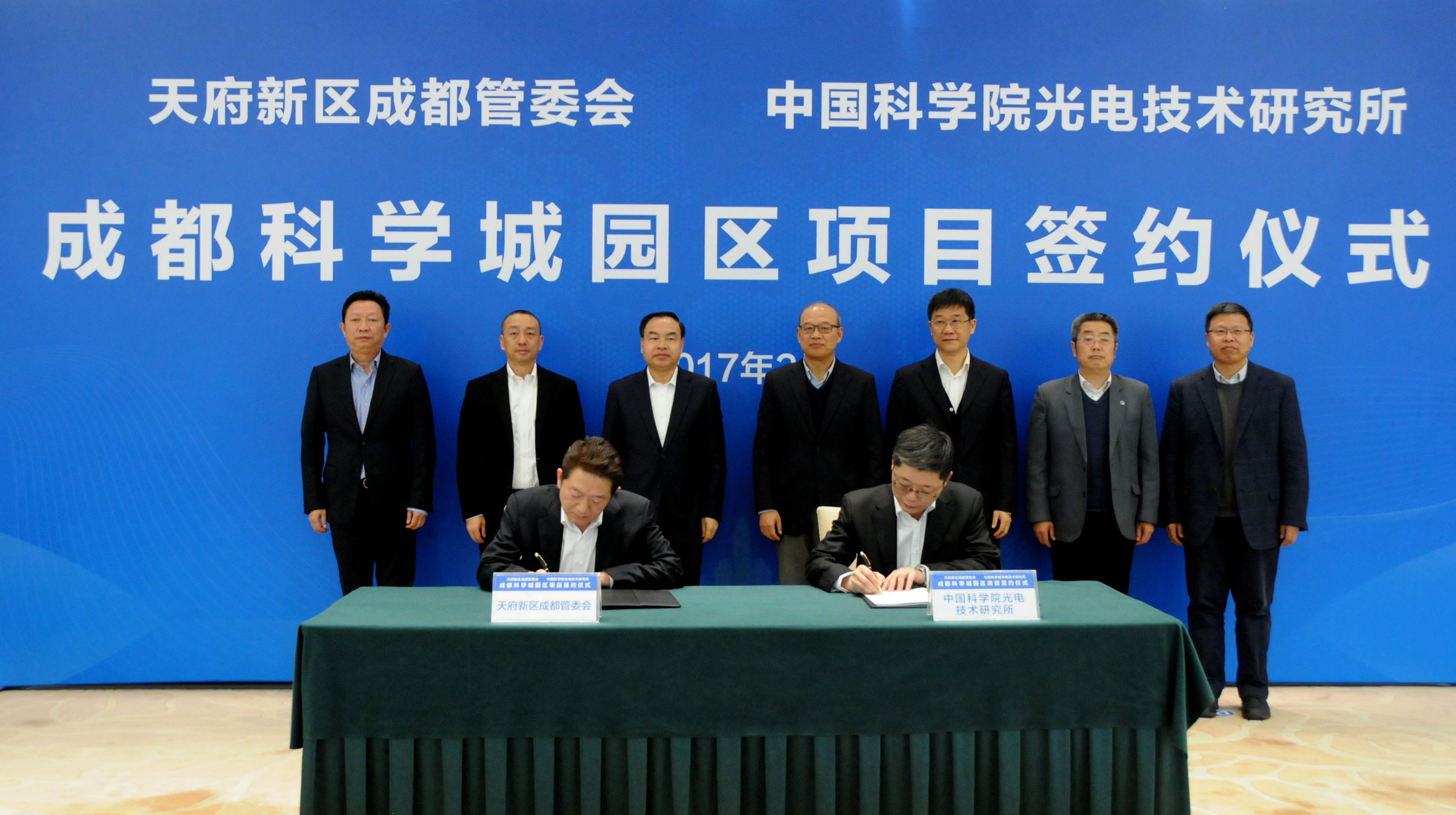 2月17日,中国科学院光电技术研究所(以下简称光电所)与天府新区成都管委会园区项目实施协议签订仪式在成都天府新城会议中心举行。成都市市委书记唐良智,中科院副院长王恩哥,成都分院院长、省政协副主席张雨东,光电所法定代表人、副所长刘恩海,光电所党委书记杨虎等领导班子成员出席仪式。