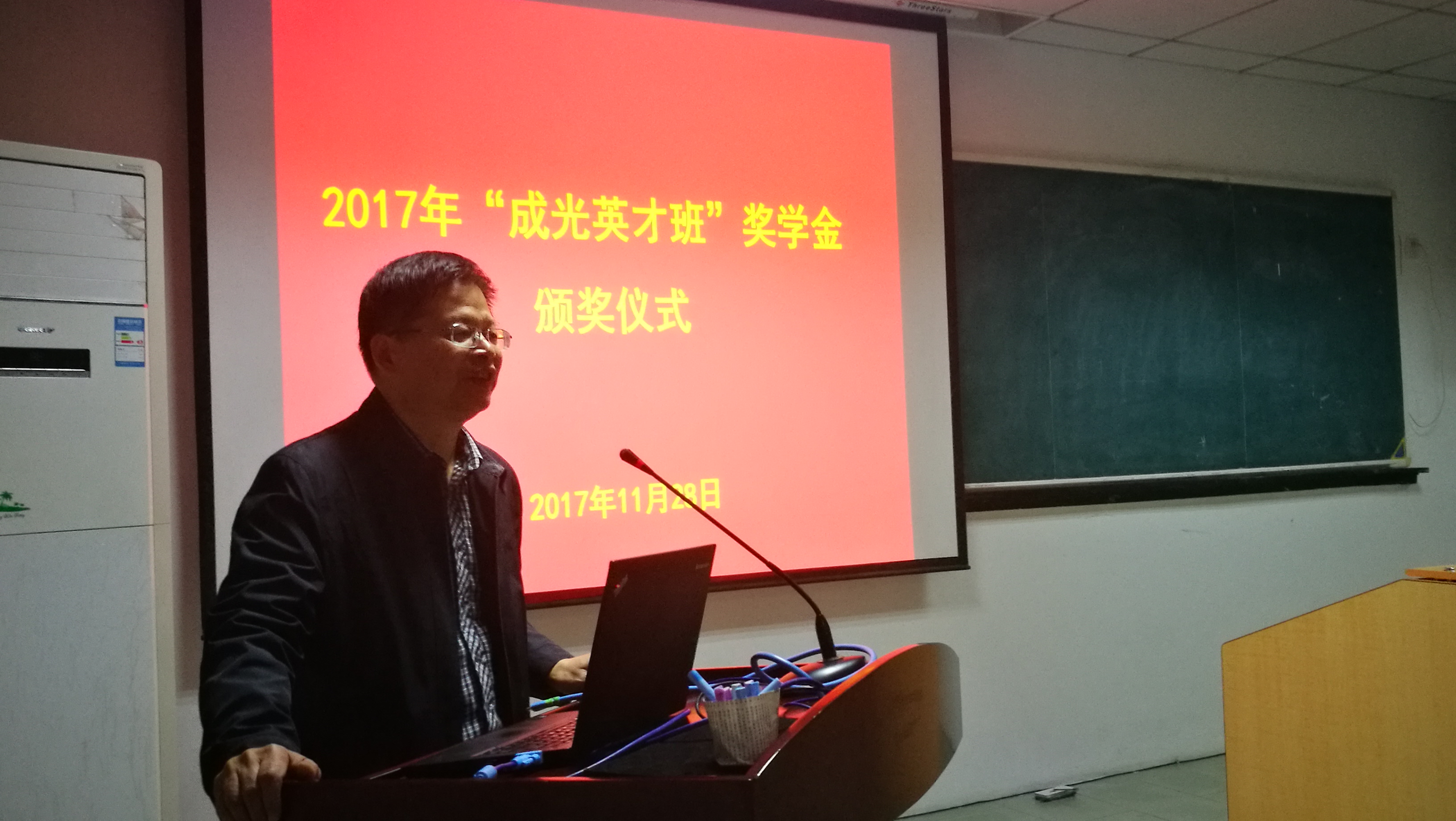 11月28日,光电所与华中科技大学光学与电子信息学院(简称华科光电学院)共建的首届“成光英才班”奖学金颁奖仪式在华科光电学院南五楼613教室举行。光电所总质量师范天泉研究员、华科光电学院副院长杨晓非教授应邀出席颁奖仪式并致辞。光电所人事教育处处长唐小萍研究员出席并宣读了获奖名单。两届英才班学生、华科班主任余洪斌教授、光电所张兰强副研究员等共50人参加了仪式。仪式由研究生部向银辉老师主持。