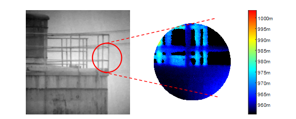就越低,因此面阵成像系统的测距范围远小于单点扫描测距系统,一般仅适用于较近距离的成像探测。
