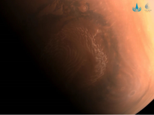 此前,中分辨率相机在2021年3月4日拍摄了火星首张彩色图像----北极云层图像;在2021年3月16日拍摄了火星南半球侧身图像;在2021年3月18日拍摄了火星北半球侧身图像;火星南北半球侧身图像中,火星呈“月牙”状,表面纹理清晰。