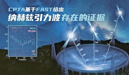 中国脉冲星测时阵列(CPTA)研究团队,利用被誉为“中国天眼”的500米口径球面射电望远镜(FAST),发现纳赫兹引力波存在的关键性证据。图为这一发现的示意图。 中国科学院供图