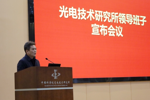 蔡宏志宣读了中共中国科学院党组的任免通知,罗先刚同志任光电技术研究所所长,王嘉图同志任光电技术研究所党委书记(兼),谢小平、廖胜同志任光电技术研究所副所长。