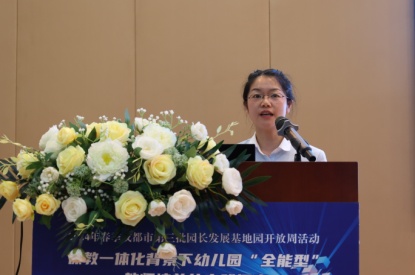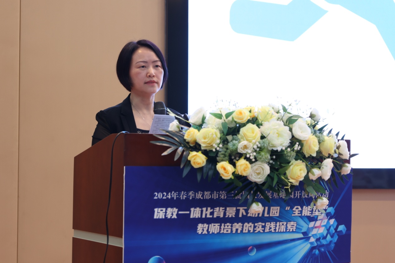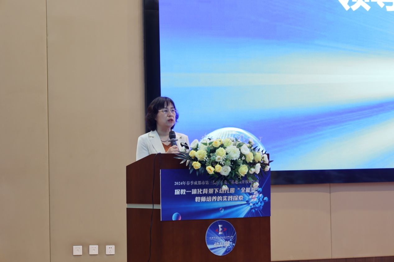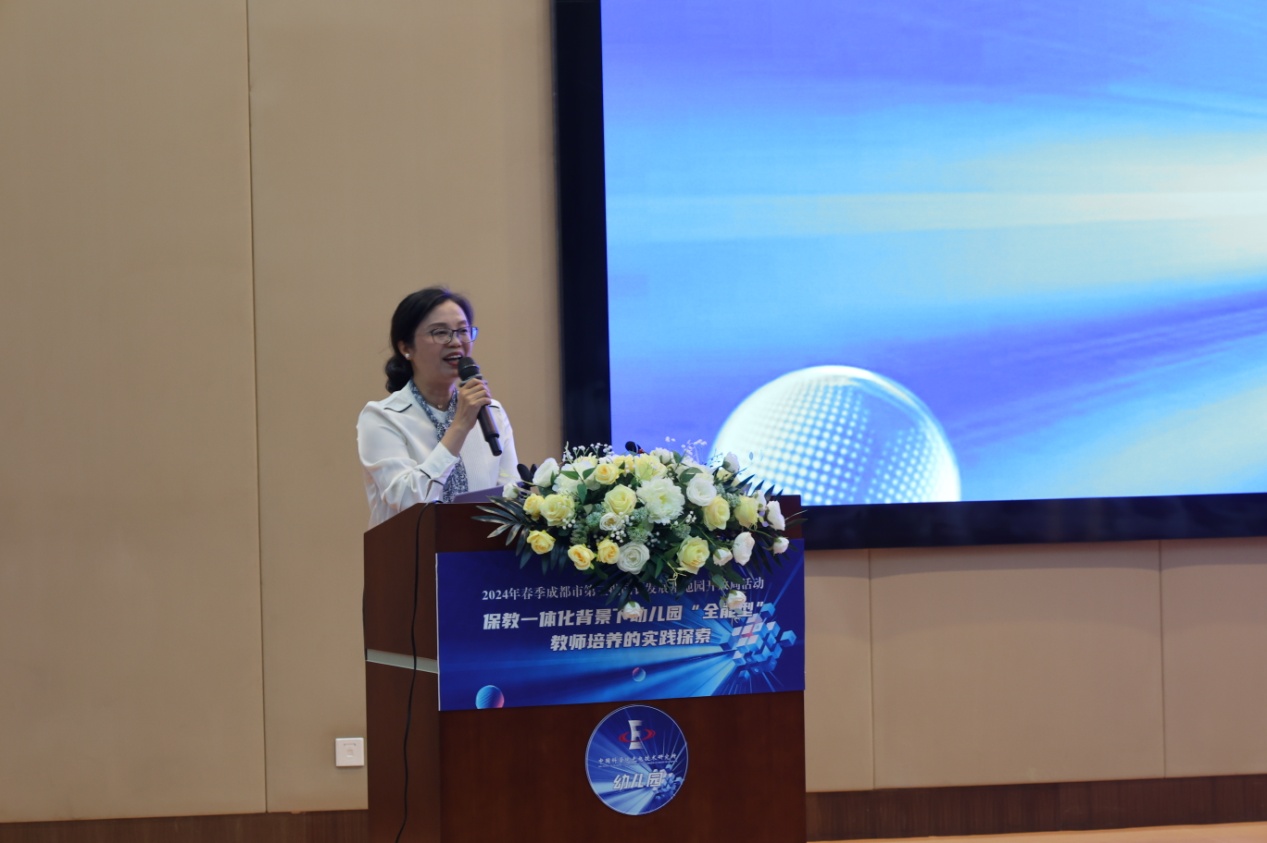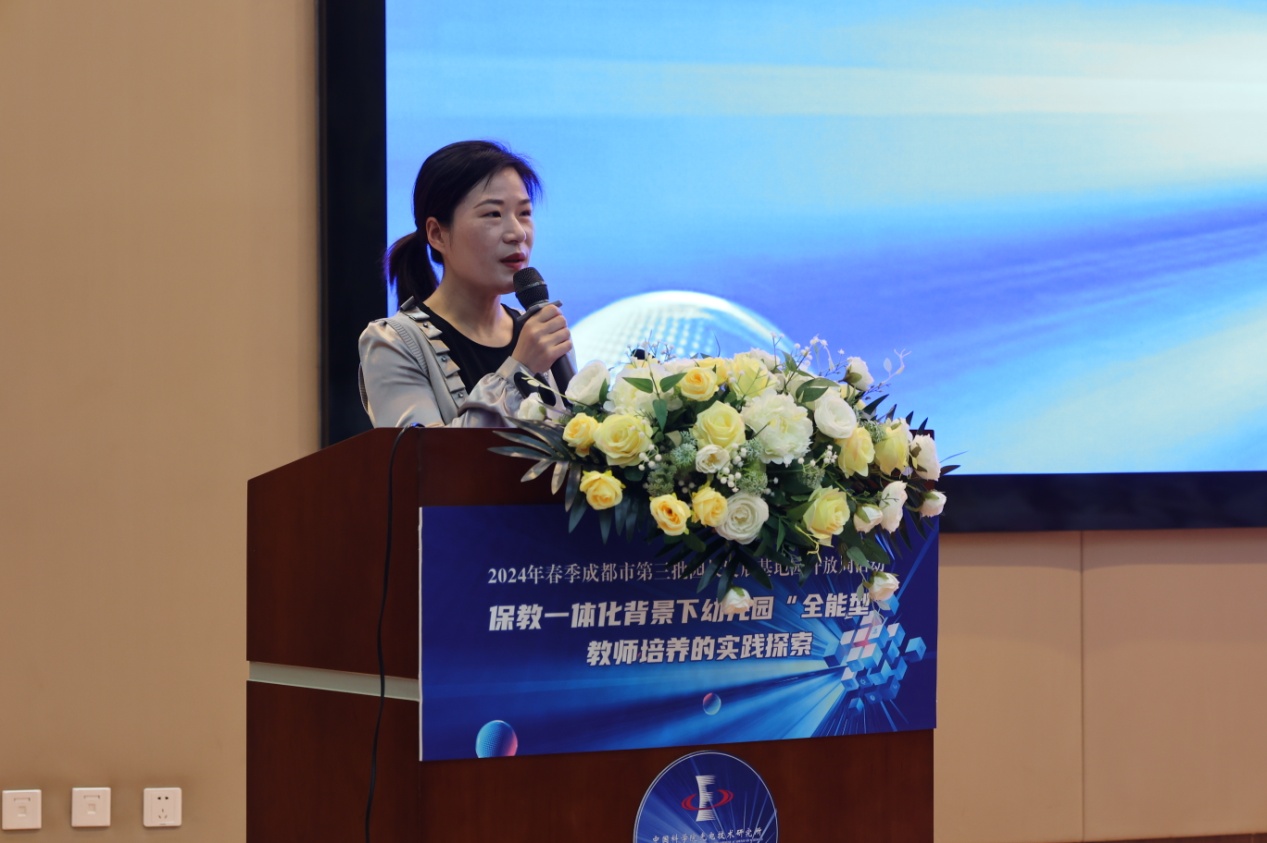光电所纪委书记周谊、双流区教育局副局长黄曦、成都市教育科学研究院教师发展研究所教研员蒲嘉荣、双流区教育科学研究院教师发展中心主任罗强、双流区教育局学前教育科韩萍老师莅临活动现场。活动由双流区教育科学研究院副院长李顺蓉主持。