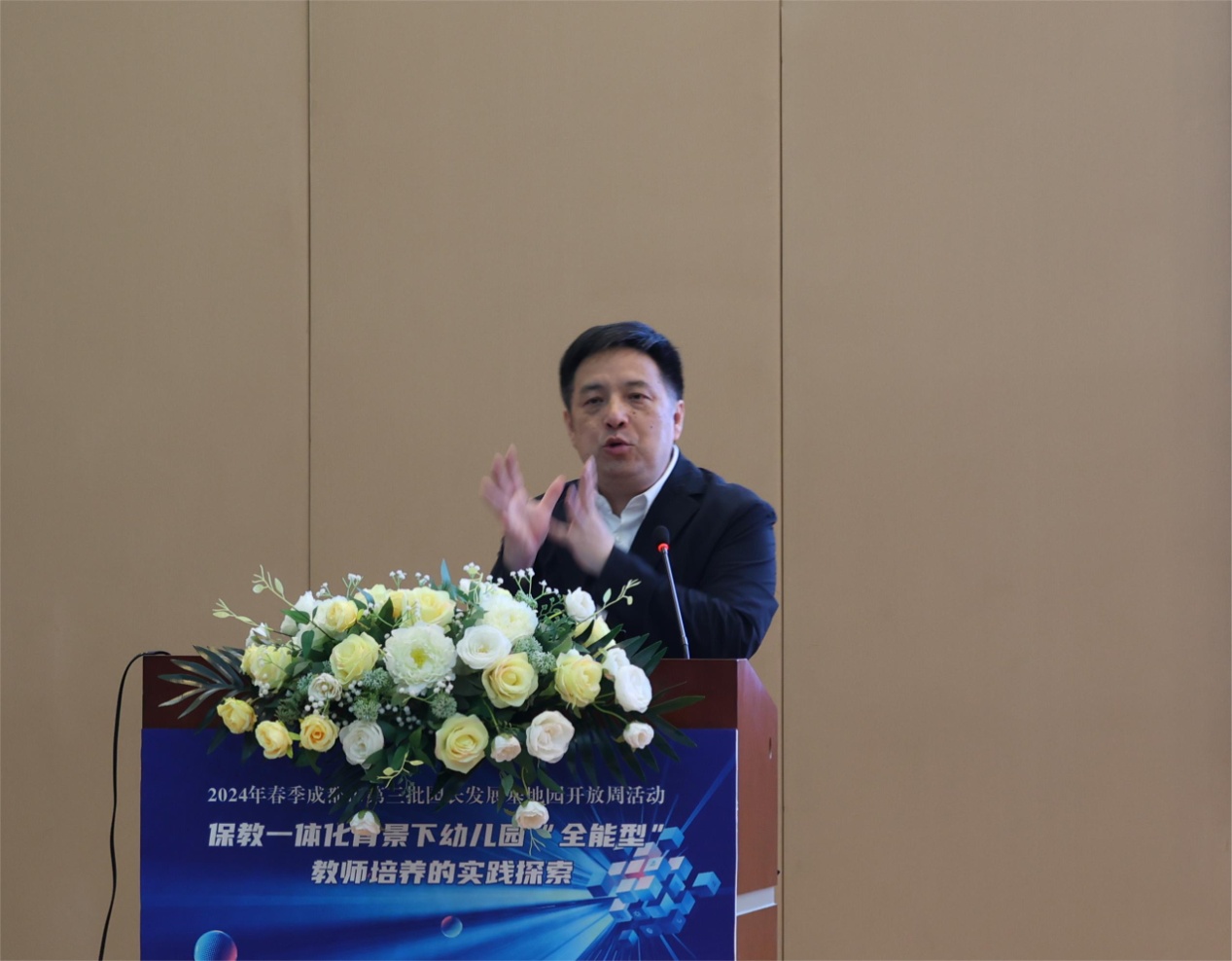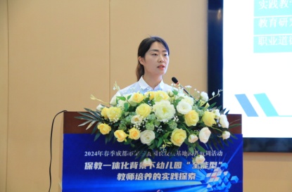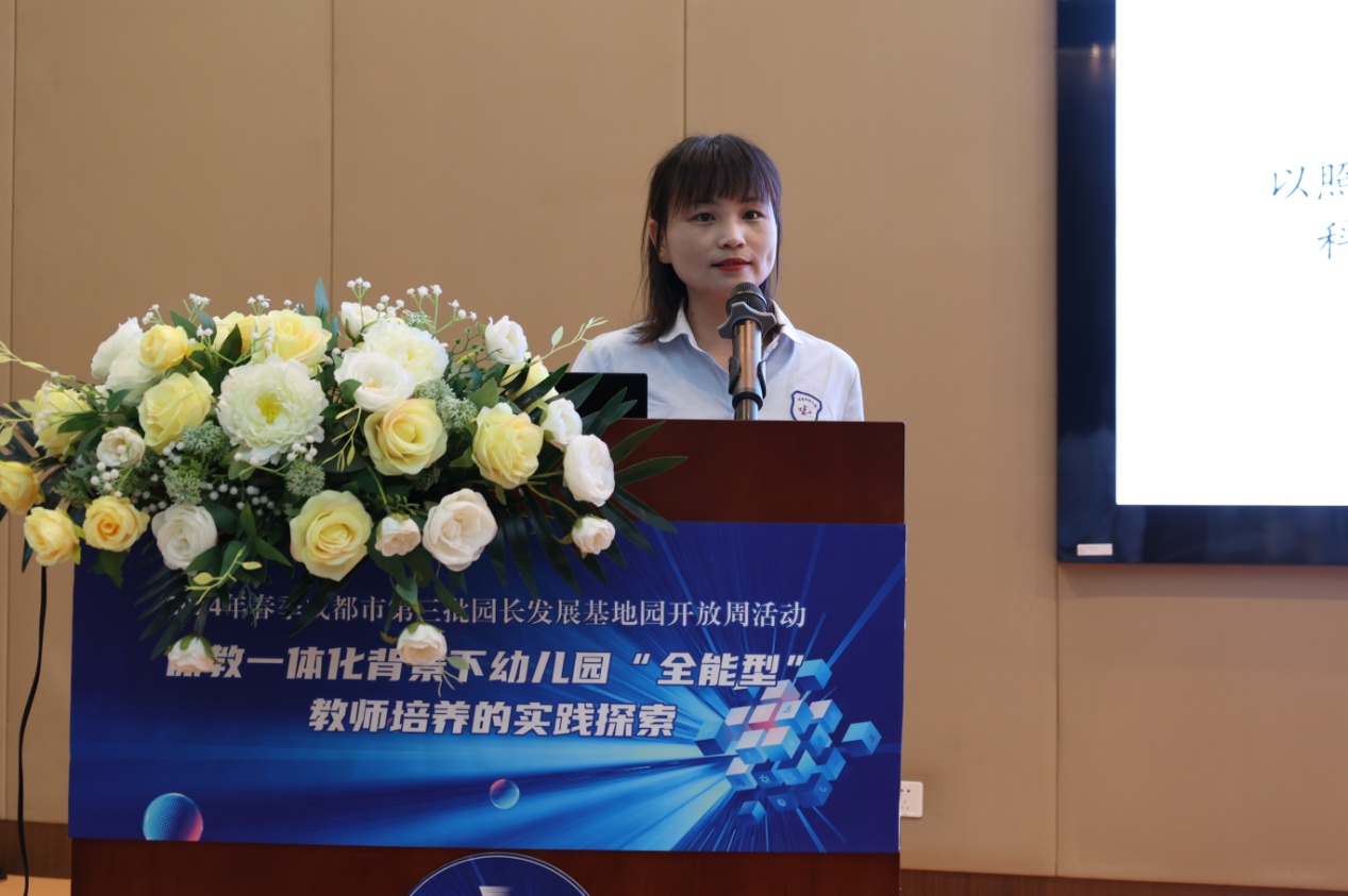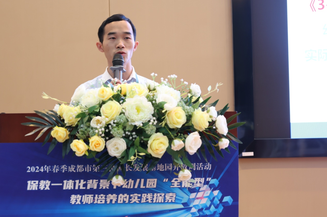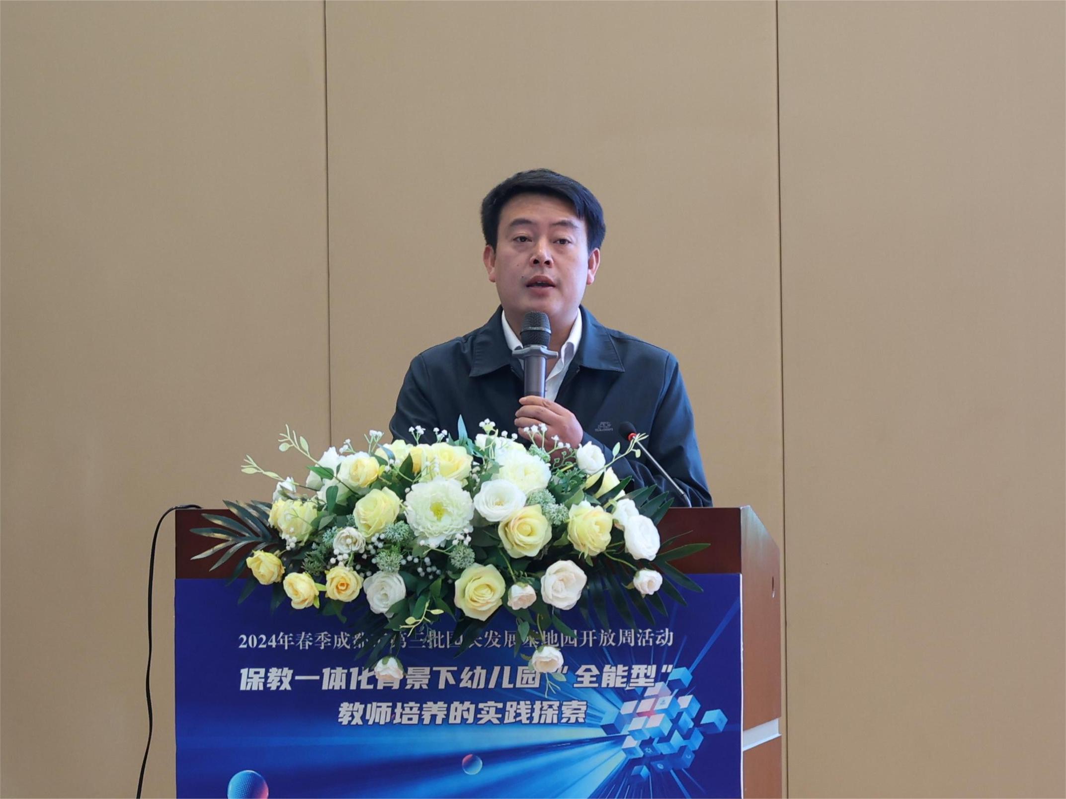 光电所纪委书记周谊、双流区教育局副局长黄曦、成都市教育科学研究院教师发展研究所教研员蒲嘉荣、双流区教育科学研究院教师发展中心主任罗强、双流区教育局学前教育科韩萍老师莅临活动现场。活动由双流区教育科学研究院副院长李顺蓉主持。
