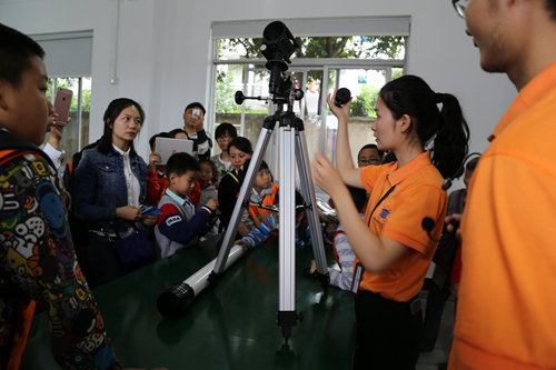 在科研展厅,科普协会成员和科普志愿者从光电所的发展历史到最新的科研成果等进行了热情洋溢的讲解,当谈到光电所在国际上首次获取太阳大气7波段层析成像等重要科研成果的时候,现场都会爆发出热烈的掌声。在微细加工光学技术国家重点实验室展厅,讲解人员通过激光笔把纳米光刻下的美丽图案投射到墙壁上时,都会听到参观者的阵阵惊叹声。当参观者通过显微镜观察到相当于发丝百分之一的微米光刻线条和发丝的对比图案时,都啧啧称奇:“这么小的线条是怎么刻上去的呢?”