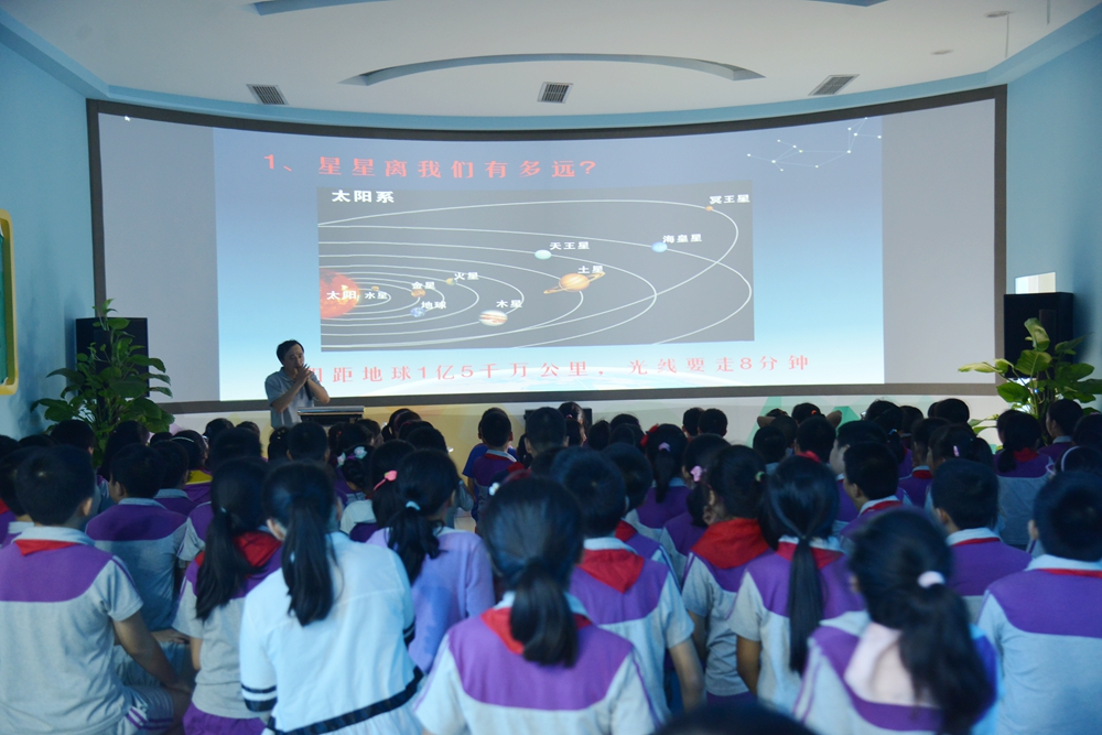 吴永前精彩的报告,同学们听得如痴如醉,完全被望远镜的魅力所征服,他们的激情被点燃,踊跃提出了自己的观点和疑惑。报告结束后,仍有不少求知若渴的小朋友拉着吴老师了解望远镜更深层次的问题。“天文望远镜”报告,不仅让孩子们更深入地认识星图和天望远镜,更激发了他们的科学思维和意识,开阔了视野。