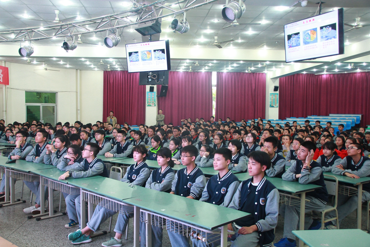 陈勇老师在学术厅为同学和老师们作《嫦娥探月》的专题报告。他从童话故事到人类探月历程,再到中国探月工程娓娓道来,为武高学子送去了一场航天知识的科学盛宴,同学们与陈勇老师的精彩互动把活动推向高潮,报告现场掌声不断。