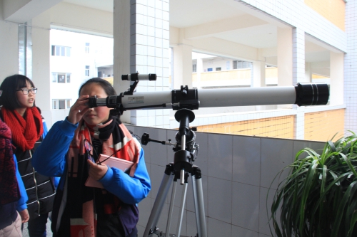 下午两点,向银辉老师为大英中学的学子带来了一堂题为“让星星不再眨眼”的自适应光学科普讲座,学生们在精彩生动、激情洋溢的讲解中体验到了科学的神奇和宇宙的奥秘,并多次以热烈的掌声为我国在星体目标高分辨力观测、太阳大气层析成像与空间天气预报、激光核聚变光束控制、新视觉光学等方面取得的世界前沿成就表达了崇高敬意随后,我所五名本科阶段毕业于清华大学、电子科大、川大的研究生与同学们学习方法和未来梦想进行了互动紧接着,研究生们分成几组,带领同学们现场体验光电仪器。魔幻的光电效应、磁力与电力的转换、光线折射下的美丽……一个个神奇的实验展现着光电科技无尚的魔力,冲击着内心。体验结束后,许多同学不愿离去,拿着笔记本,拗着老师和研究生大哥哥大姐姐签名留念,并写下“勤奋学习,追逐梦想”、“在国科大等你”等励志祝福。