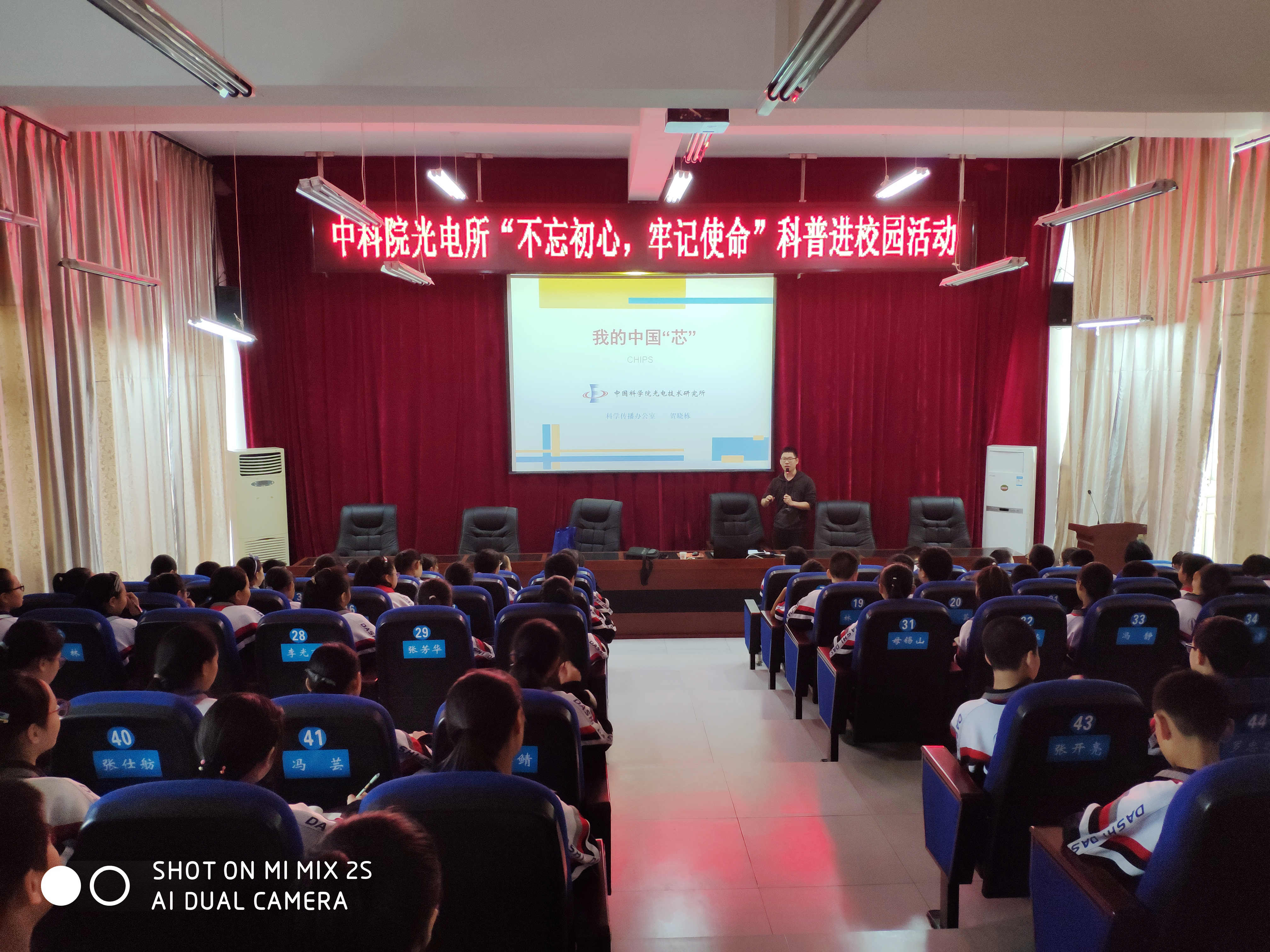 贺晓栋在大石镇初级中学做《我的中国芯》科普讲座,他讲述了芯片的完整制作过程,介绍了我国在芯片制造上和世界先进水平的差距以及科学家们正在努力的目标,详细阐述了芯片在当今社会的重要地位。让同学们了解了摩尔定律,了解了芯片在计算机,机器人,数据线中的应用,并对芯片的日后发展进行了展望。开拓了同学们的视野,了解了芯片推进步伐,激发了同学们的科研兴趣,提高了学习热情。