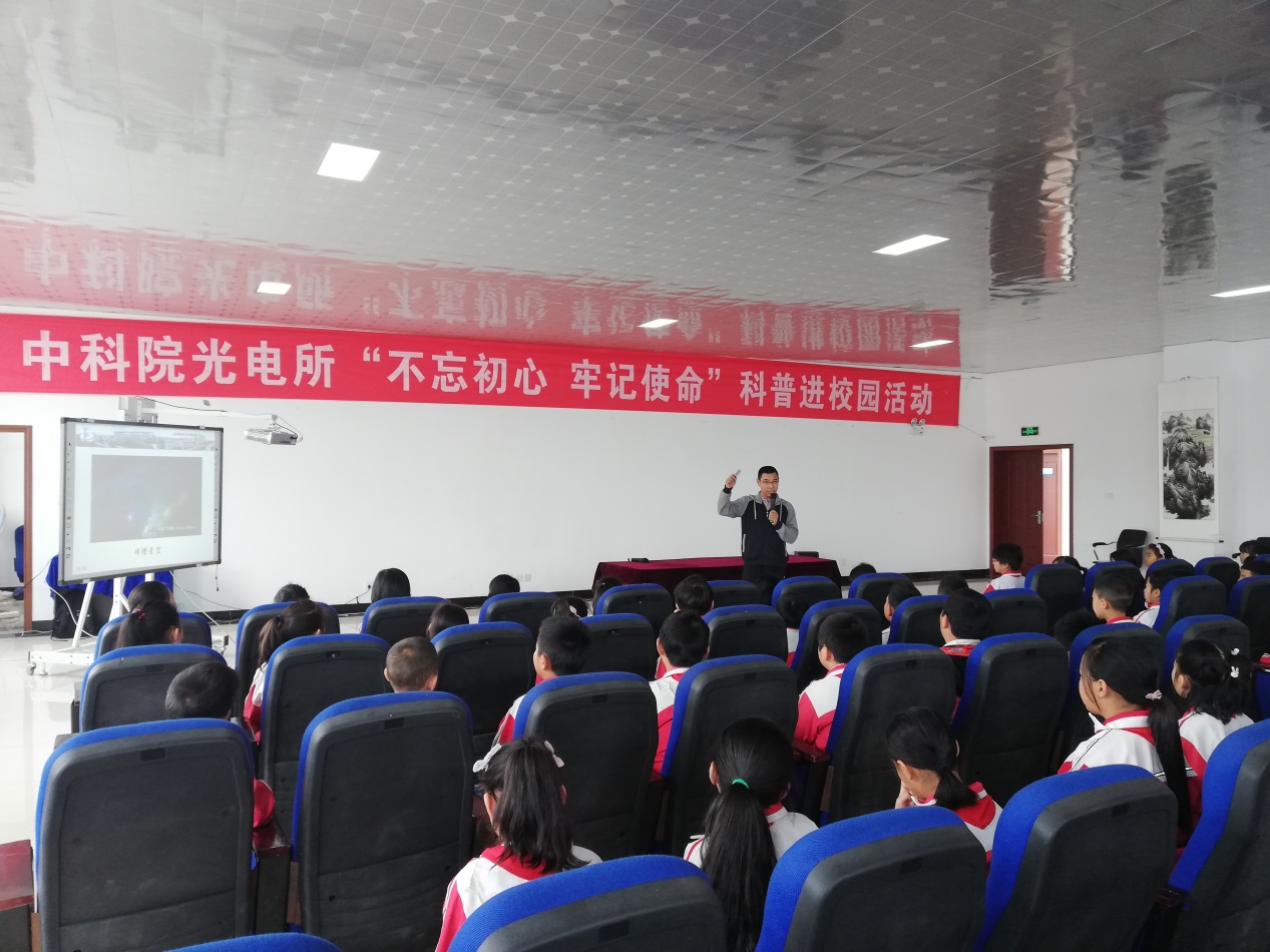 根据四川省委省政府精准扶贫工作部署,光电所对口帮扶广元市利州区大石镇大广村。为切实加强对口帮扶工作,进一步落实《全民科学素质行动计划纲要》的要求,推广科学普及教育,加强青少年科技教育,提高青少年科学素质,进一步增强青少年学科学、爱科学、用科学的责任意识,2018年10月11日,光电所开展以“‘不忘初心,牢记使命’中科院光电所科普进校园”为主题的科普交流活动。光电所科学传播办公室王倩、陈勇、贺晓栋以及幼儿园杨凌、张厚贵一行5人来到广元市利州区大石镇初级中学、大石小学、大石幼儿园开展科普教育活动。