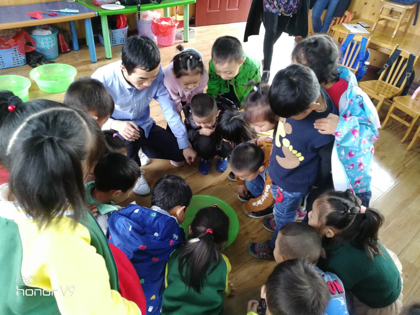 张厚贵给幼儿园大班孩子们带来了科学游戏——《纸开花》,以“变花魔术”引出主题,激发幼儿探究兴趣。并通过做纸花、观察纸花开放、问题交流、经验分享的形式,让孩子在操作中感知纸的吸水性。活动现场小朋友们主动回答问题,积极动手实验,气氛热烈。