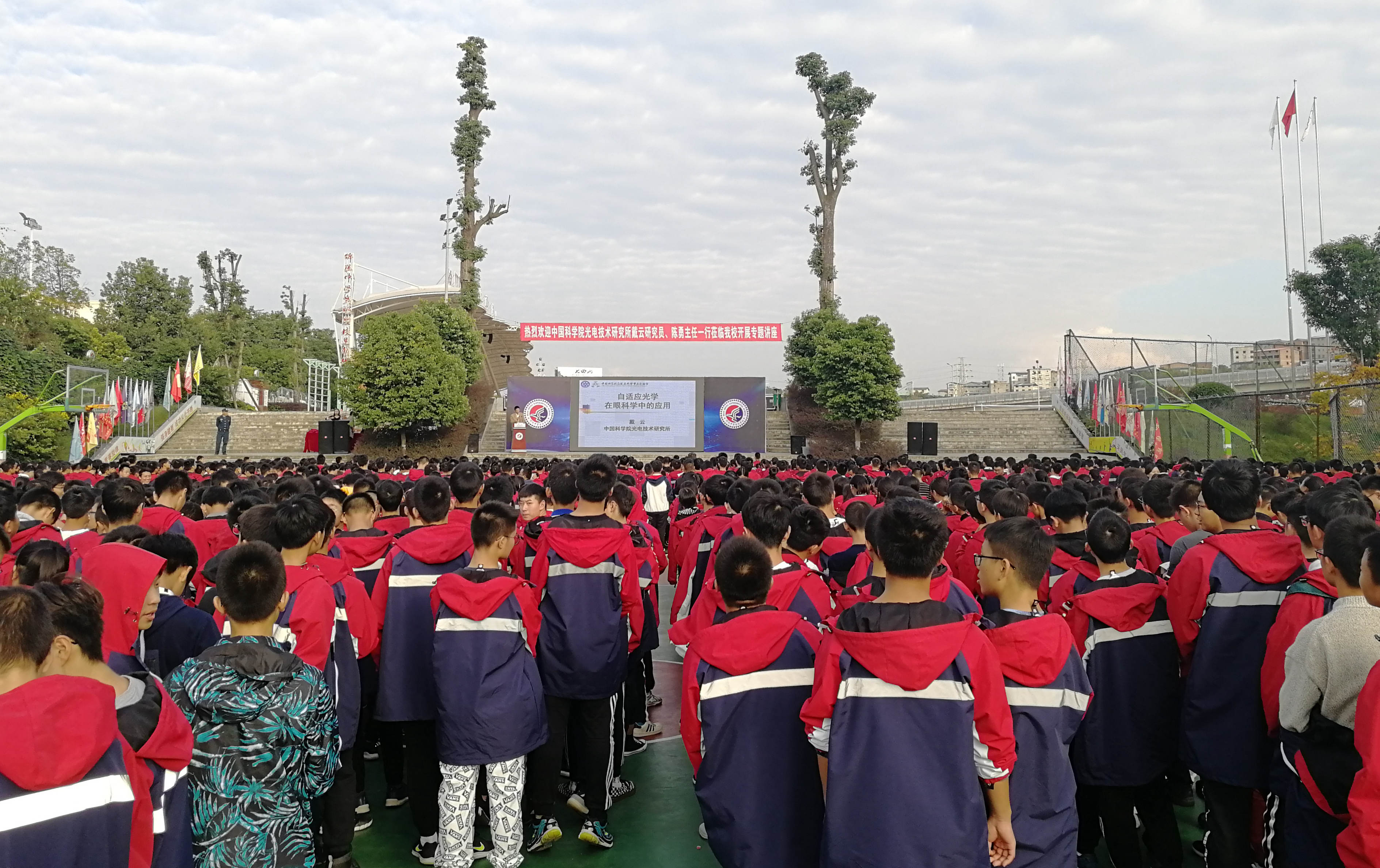 2018年10月26日,光电所自适应光学重点实验室博士生导师、研究员戴云走进绵阳中学实验学校,为同学们带去了《人眼自适应》科普报告,带领同学们认识眼睛、了解视网膜高分辨成像及光学视觉仿真器的原理和应用。