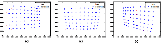 仿真实验和实际实验验证了所提出算法的正确性和鲁棒性。图1是仿真棋盘格角点,图2是仿真实验误差统计,图3是实际棋盘格图像,图4是提出的标定算法和传统张正友方法的重投影误差对比。