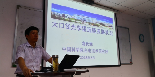 紧接着,他作了题为《大口径光学望远镜发展状况》的专题报告,介绍了国内外大型光学望远镜的发展历程以及光电所在此领域的发展现状。
