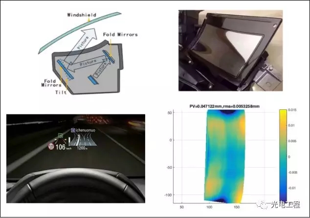 该结构光面形检测技术可扩展应用至汽车抬头显示系统HUD、手机屏幕等电子工业产品的在线面形检测系统中,可实现产品质量的全检,满足工业生产厂商对产品质量的严格控制要求。图2所示为手机屏幕盖板玻璃表面面形的检测结果。图3为汽车抬头显示系统HUD中一块自由曲面反射镜的检测结果。