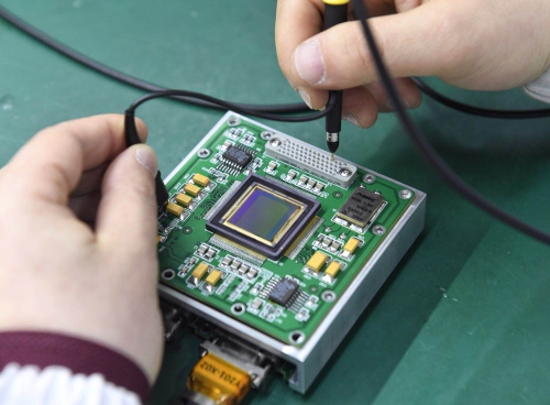 1月17日,嫦娥四号地形地貌相机中科院光电技术研究所研制人员在对相机进行电路调试。