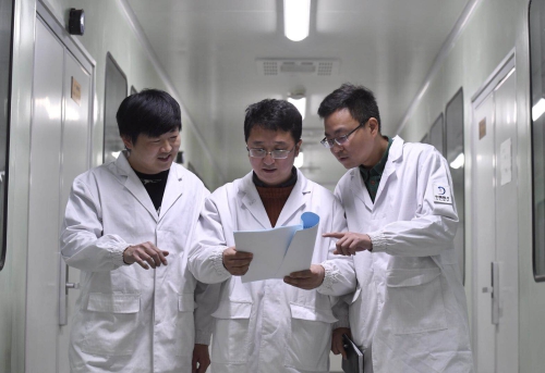 1月17日,嫦娥四号地形地貌相机中科院光电技术研究所研制团队在装调检测整机关键指标。