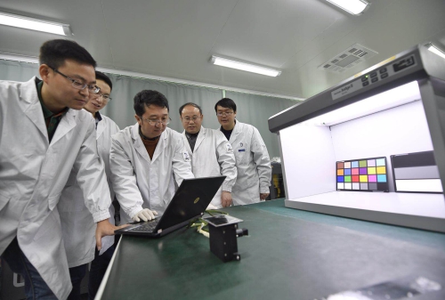 1月17日,嫦娥四号地形地貌相机中科院光电技术研究所研制团队在对相机进行色彩标定。