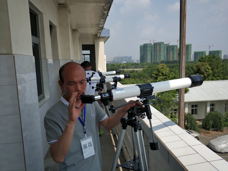 下午为科学探究课程。光电所设置有望远镜探究课程、神器激光探究课程、走进奇幻的平面3D世界探究课程和全息技术探究课程。望远镜探究课程中,授课老师段昳晖从望远镜的历史开始到望远镜的原理和现代望远镜的种类进行了详细讲解,教师们亲自动手体验望远镜的装配和观星调试,并对远处的建筑物进行实际观测实验;神器激光探究课程中,参加培训的教师们亲自体验激光阵,感受激光的神奇魅力,授课老师刘筱东为大家讲解激光原理及应用,带领大家装配激光红外报警装置。全息技术探究课程中,授课老师李凡星为大家讲解全息基本原理及在生活中的应用,带领大家制作3D全息装置,并互相交流探讨全息技术教学经验;平面3D世界的探究课程中,授课老师哈颖丽讲解了平面3D图的原理和绘画和观看方法、3D眼镜的原理和制作方法、偏振片的原理和应用以及3D电影的制作,老师们动手绘制3D图并进行观测实验,由浅入深探究平面3D技术。