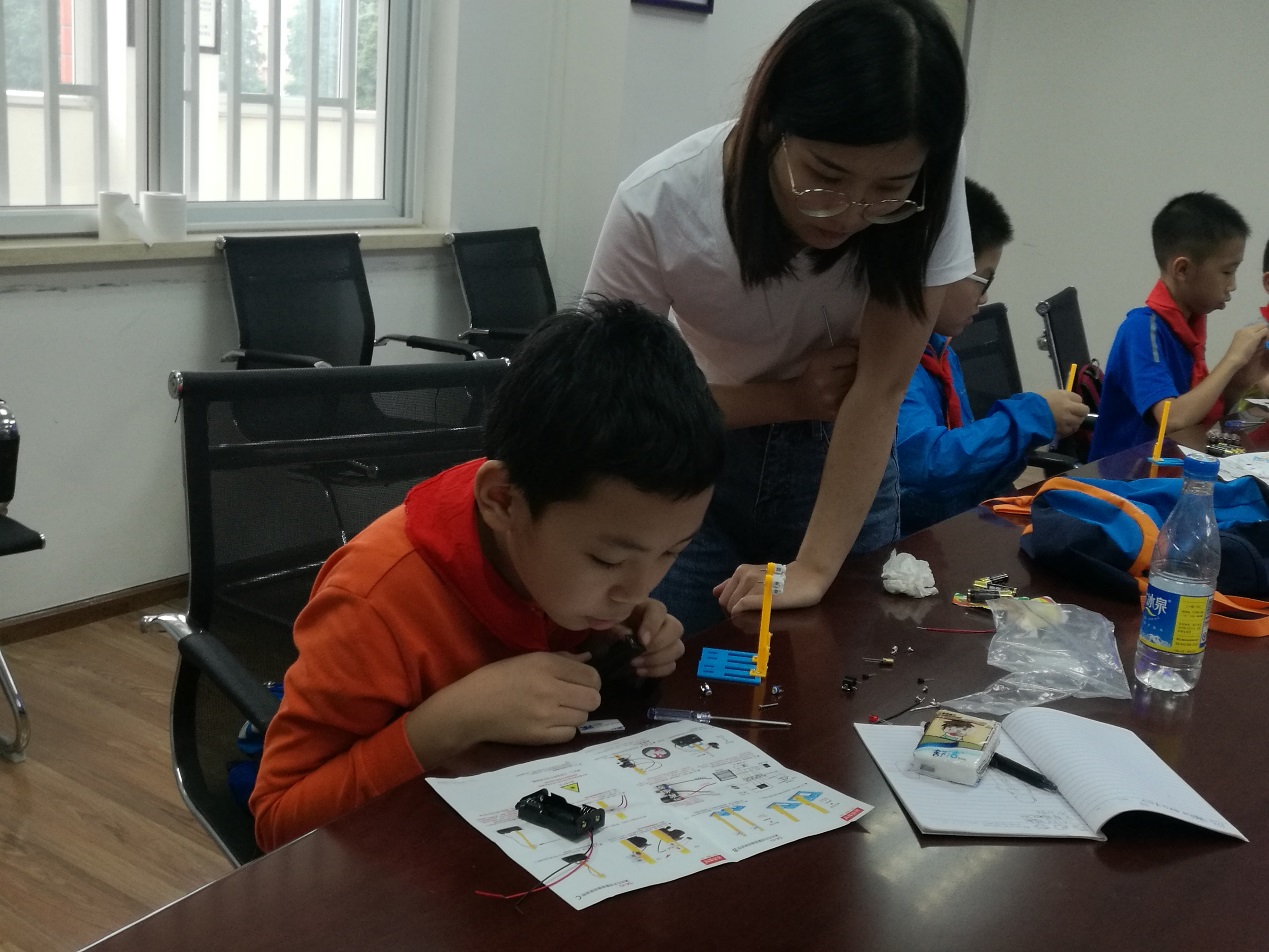 可爱的孩子们带着对激光世界的好奇,通过讲座和ppt演示,了解激光的简要发展历程和激光的各种特性,并且观看了激光在生活中各类产品的广泛应用,孩子们争相提问,也努力回答科普协会给孩子们准备的有趣的光学问题,从宇宙射线到医用伽马刀,激光作为新四大发明之一,促进着各方面科学技术的快速发展,开拓了一个新的世界。随后,由科普协会会员带领孩子们动手制作了简易的激光红外报警器,从电路结构到光路对准,孩子们克服了很多困难,并最终每个人都能完成电路组装和光路调整,激发了孩子们极大的兴趣也锻炼了孩子们遇到困难勇敢面对的能力。科普协会还介绍了如何让光“走弯路”、激光雕刻、激光清洗的原理,以及光电所信标光科学实验中激光的作用,孩子们在学习激光知识的同时,也了解到激光的特性和安全防范措施。