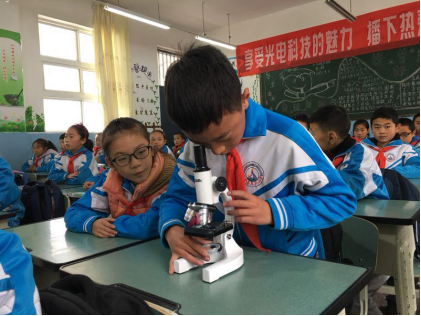 科学知识开启智慧大门,在小金县城关二小和美兴小学,八室支部书记魏凯、副主任李新阳带领科研人员通过实物与图片相结合的方式让学生们认识了显微镜的结构和作用以及操作注意事项,并与在场的学生们积极互动,指导学生独立使用显微镜观察动植物玻片标本,让他们在体验科学的同时,也能从多角度理解实验仪器背后的科技知识原理。在整个活动过程中,孩子们兴致高涨,满怀好奇地体验着每一个活动环节,探索式地学习各种知识,实现了教学与乐学的完美统一。