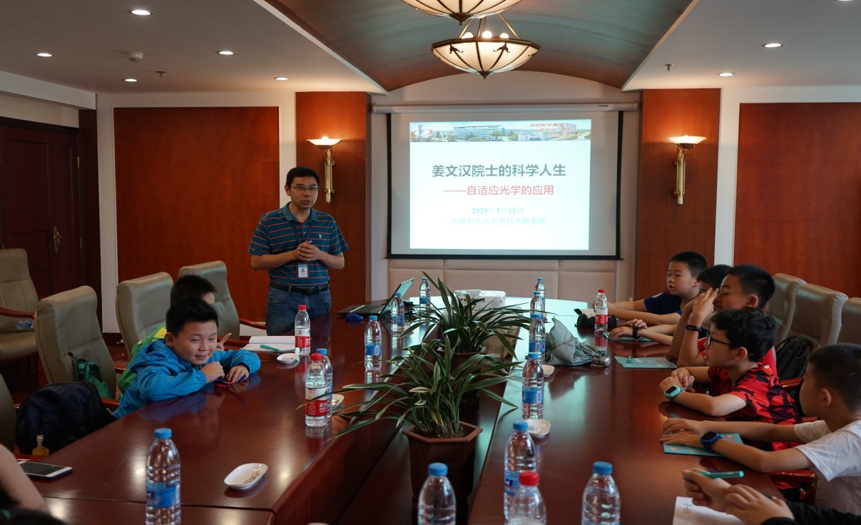 在科普讲座环节,陈勇老师为老师和同学们精心准备了《姜文汉院士的科学人生》的科普讲座,姜文汉院士是光电所自适应光学的开拓者和奠基人,在自适应光学、天文观测、生物医学光学等领域取得累累硕果。陈勇老师从嫦娥探月工程、神舟和天宫、量子通信等重大工程项目再到姜文汉院士工作的点点滴滴,给同学们娓娓道来。小朋友们从对自适应光学的一无所知到对自适应光学知识及科研成果产生浓厚的兴趣,现场氛围异常热烈,讲座结束后,同学们还争先恐后的提出一些科学问题,陈老师都一一解答。