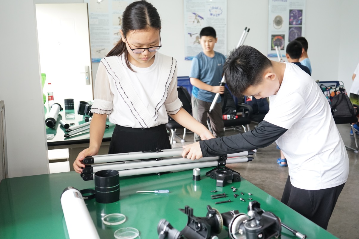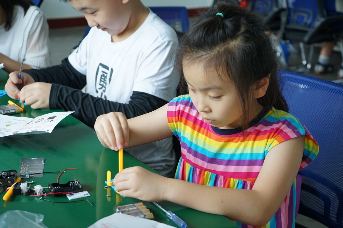 在科学探究课程环节,光电所为同学们开设了《望远镜原理初探》、《神奇激光》两个科学探究课程,同学们在科普协会研究生大哥哥、大姐姐的带领下亲自动手转配望远镜并进行观测实验。穿越激光阵的体验游戏是小朋友最受欢迎的环节之一,大家都争先恐后的参与活动。在感受激光的神奇魅力后,同学们亲自动手制作激光报警器,把激光应用到现实生活中。经过两个小时的动手实验,激光报警器纷纷制作成功,看到自己的劳动成果,同学们的喜悦之情不予言表,真真切切体会科技带来的神奇魅力。