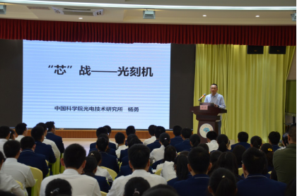 9月26日下午,光电所研究员杨勇应邀在成都七中八一学校作题为“芯战—光刻机”的学术讲座。学校高2018级200多名师生聆听了讲座。