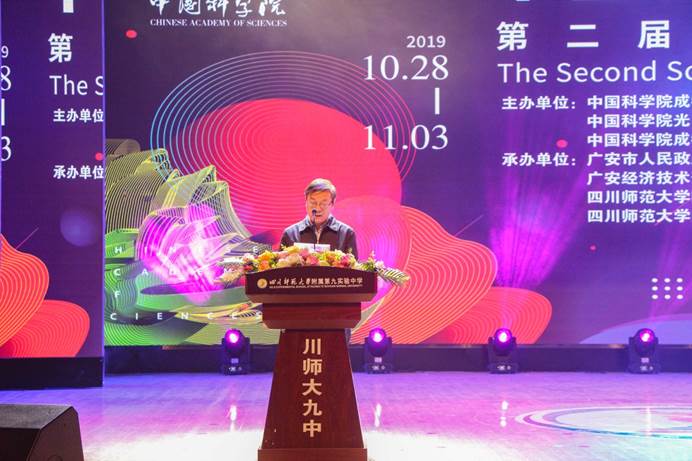 光电所副总工程师魏全忠出席开幕式并致辞,他讲到光电所作为中科院在西南地区规模最大的研究所,在自适应光学、光束控制、微纳光学等领域取得了多项重大成果,2016年2017年连续两年荣获国家技术发明一等奖,先后取得包括国家科技进步奖特等奖在内的500余项科技成果,具有丰富的科普资源优势。本次活动在小平故里广安市隆重举行,推动中小学生讲科学、爱科学、学科学、用科学的良好氛围,这也是我们一起共同践行科教兴国战略。希望同学们怀揣科学家的梦想,继承和弘扬科学家锲而不舍、锐意创新的精神,立志为建设世界科技强国而勤奋学习。