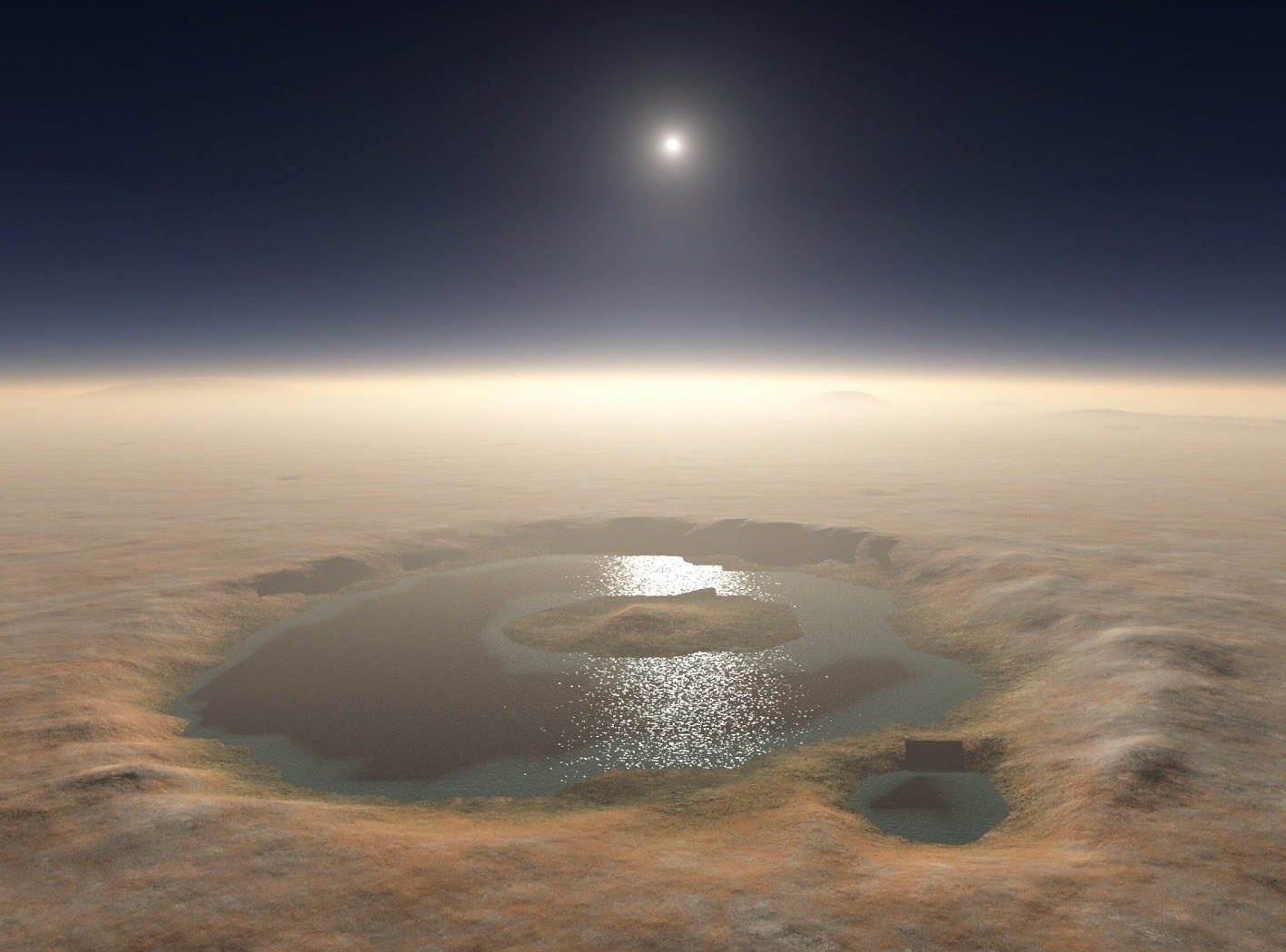 火星大气中的水份极少,科学家估计,倘若把火星上的水冰全部融化成水,也只能在火星表面形成一个10米深的大海。与我们地球表面的波涛茫茫的海洋相比,火星上的水量就显得微不足道了。