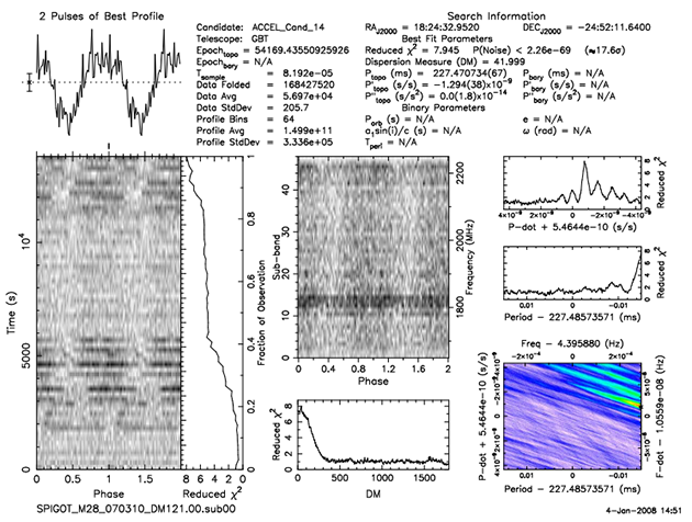 (以下图片为真实脉冲星搜寻结果图,来自http://pulsarsearchcollaboratory.com/)