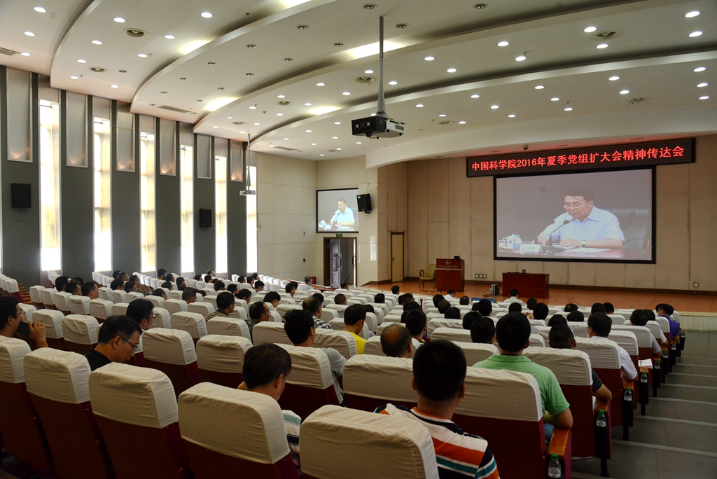 会上,院党组书记白春礼作报告,向全院传达中科院2016年夏季党组扩大会议精神。他指出,7月18日至21日中科院党组召开了2016年夏季扩大会议。会议深入学习领会习近平总书记系列重要讲话精神和全国科技创新大会精神,认真学习贯彻党中央、国务院一系列重大决策部署,深入分析当前国家改革发展形势,认真总结中科院“十二五”时期改革创新发展的成绩与经验,进一步明确“十三五”时期发展目标、重大战略和改革发展举措,并就启动实施“十三五”规划和近期重点工作进行了部署。