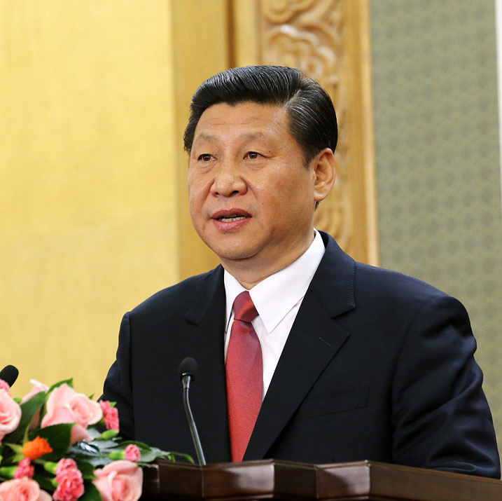 11月15日,刚刚在中共十八届一中全会上当选的中共中央总书记习近平和中央政治局常委李克强、张德江、俞正声、刘云山、王岐山、张高丽在北京人民大会堂同采访十八大的中外记者亲切见面。这是习近平总书记发表讲话。