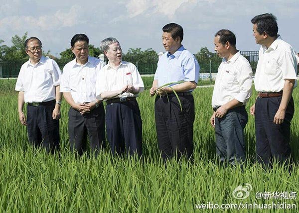 22日正是农历大暑时节,这天下午,习近平冒着酷暑,深入鄂州市水稻育种基地,查看水稻长势,向科技人员了解水稻新品种培育和推广情况。随后,他来到长港镇峒山村,走进社区综合服务中心、垃圾压缩转运站、无动力污水处理站、秸秆气化示范基地等,了解城乡一体化建设情况,并同部分村民进行座谈。6位村民代表踊跃发言,习近平指出,全面建成小康社会,难点在农村。我们既要有工业化、信息化、城镇化,也要有农业现代化和新农村建设,两个方面要同步发展。要破除城乡二元结构,推进城乡发展一体化,把广大农村建设成农民幸福生活的美好家园。