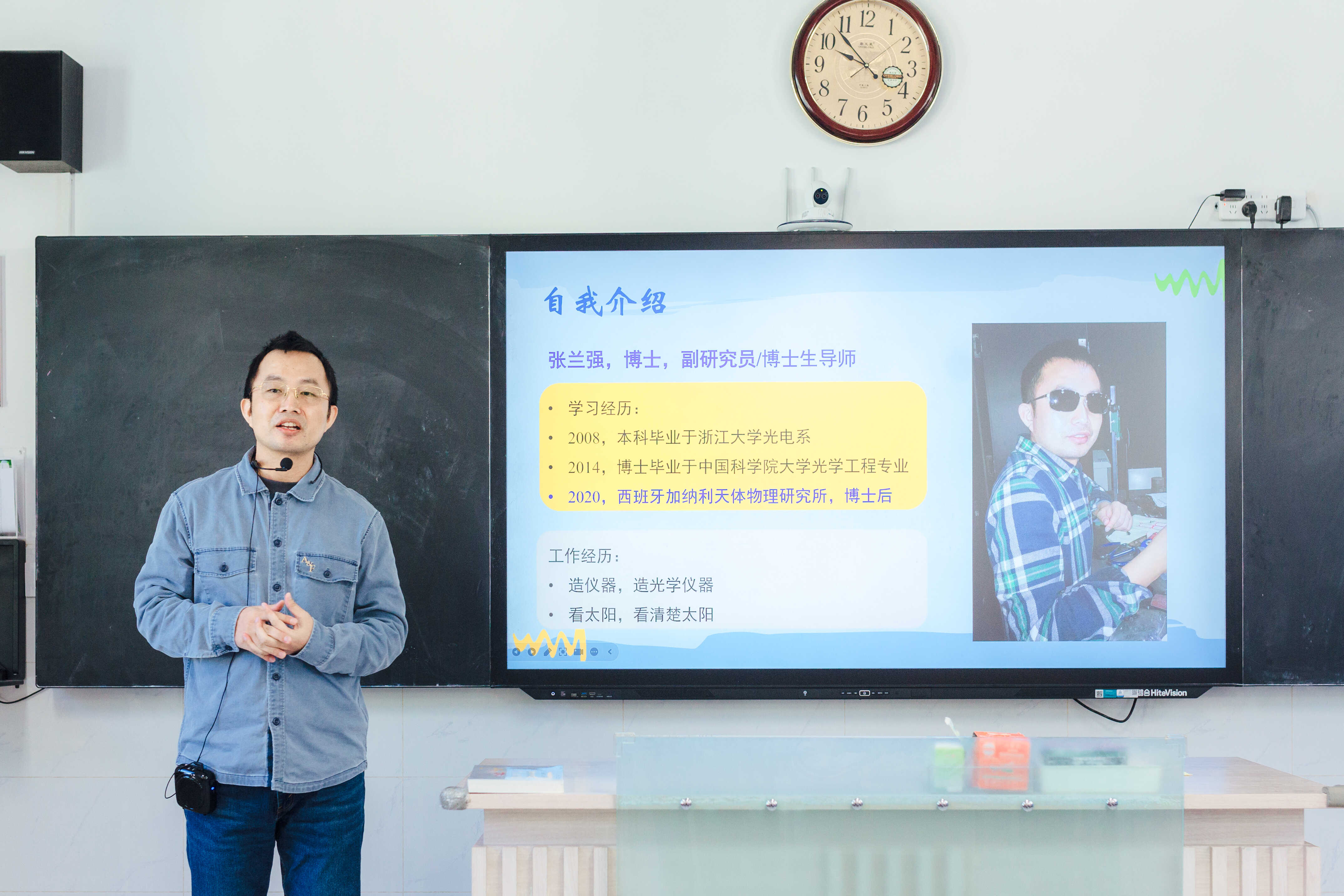 随后,光电所高级工程师陈勇在甘孜城关小学和嘎尔镇寄宿制小学,以姜文汉院士的科学人生为蓝本,生动讲述了他在艰苦环境中坚持科研、勇于探索的感人故事。副研究员张兰强在九龙县中学围绕“天文望远镜——探索宇宙的神奇之窗”主题,引领学生们走进浩瀚的宇宙世界,感受科学的魅力与神奇。