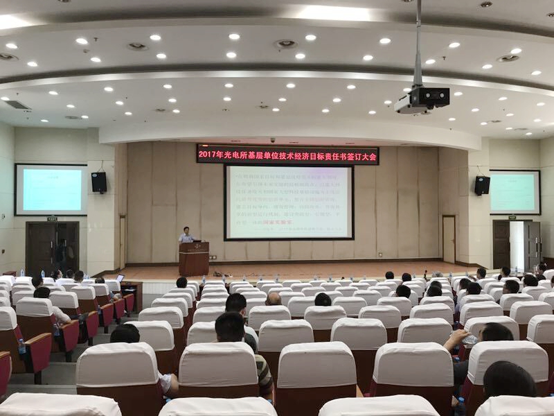 6月2日下午,光电所科技处在学术报告厅举行2017年度基层单位技术经济目标责任书签订大会。所领导、各基层单位及机关部门领导、副高以上科研人员参加会议。副所长饶长辉主持会议。