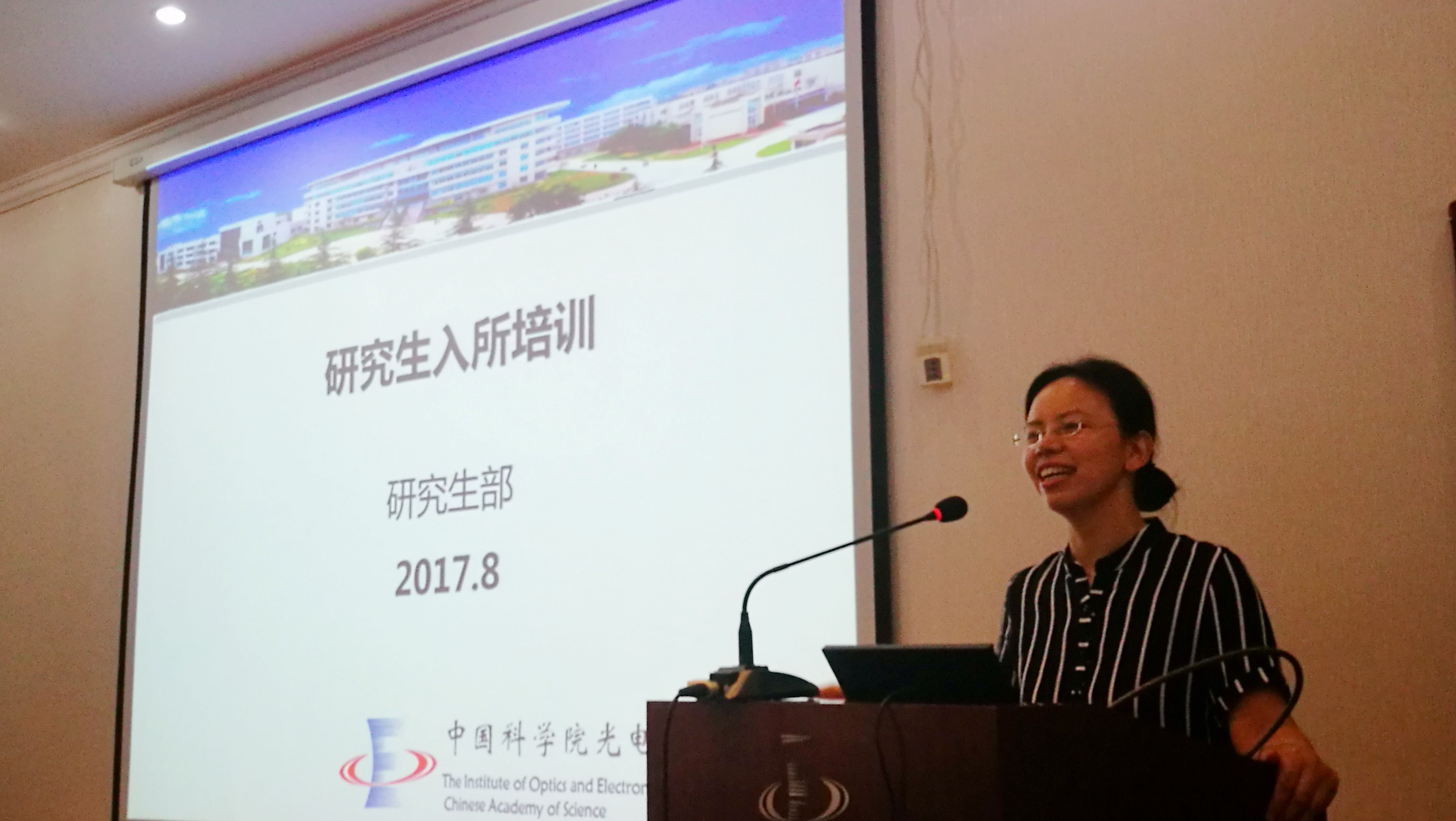 随后研究生部廖俊莉老师介绍了研究生培养各环节基本要求及奖助体系的相关政策,让同学们对回所后论文工作重要环节等有一个全面的了解;科信中心主任唐勇以及付小芳、孙秋燕老师为同学们讲解了文献查阅、信息服务、期刊与投稿等方面的内容,这些都是论文工作中不可或缺的能力;科奥达物业公司总经理应群介绍了与同学们日常生活息息相关的物业服务,帮助同学们拥有便捷快乐的光电生活;在学长分享环节,优秀博士、硕士研究生邓超、魏子然与大家分享科研论文工作经验,站在学生的角度为同学们的科研生活助力、指路。