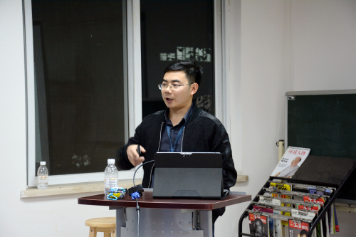 接下来进行分享的是2012级王佳博士,他带来了自己在风光及星空摄影中大量的摄影作品以及这些作品背后的故事。首先贴出的一副壮丽的银河图立即引来了大家的惊叹声,王佳博士从天气的选择、拍摄位置的选取、相机参数的调整、后期制作等方面进行了细致的讲解。随后播放的延时摄影星轨图等动感十足的图片也引起了大家浓厚的兴趣,纷纷讨教拍摄的技巧,感悟摄影大牛是如何炼成的。