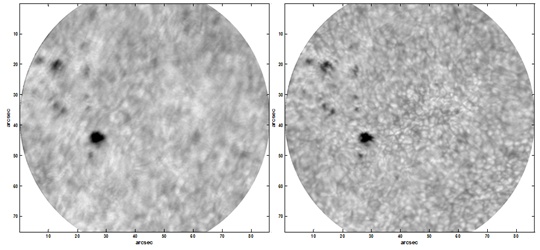 近日,在国家自然科学基金天文联合基金重点项目支持下,中国科学院光电技术研究所饶长辉研究团队成功研制国内首套地表层自适应光学(Ground Layer Adaptive Optics, GLAO)试验系统,与云南天文台1米新真空太阳望远镜对接后,于近日首次获得了太阳黑子和太阳米粒的大视场高分辨力自适应光学校正图像,标志着我国太阳自适应光学技术再次取得重大突破。