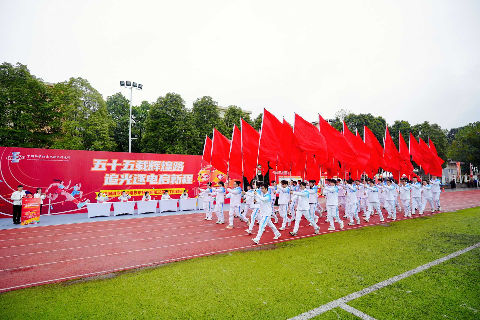 伴随《运动员进行曲》的嘹亮旋律,运动会拉开序幕。由55名研究生组成的红旗方阵率先登场,他们青春涌动、精神抖擞,呈现出新时代年轻人的朝气与活力。随后,科研代表队、机关代表队和公司代表队喊着响亮整齐的口号,步伐坚定地走向运动场,他们热情洋溢、斗志昂扬,展示出光电人团结协作、奋勇争先的精神风貌。