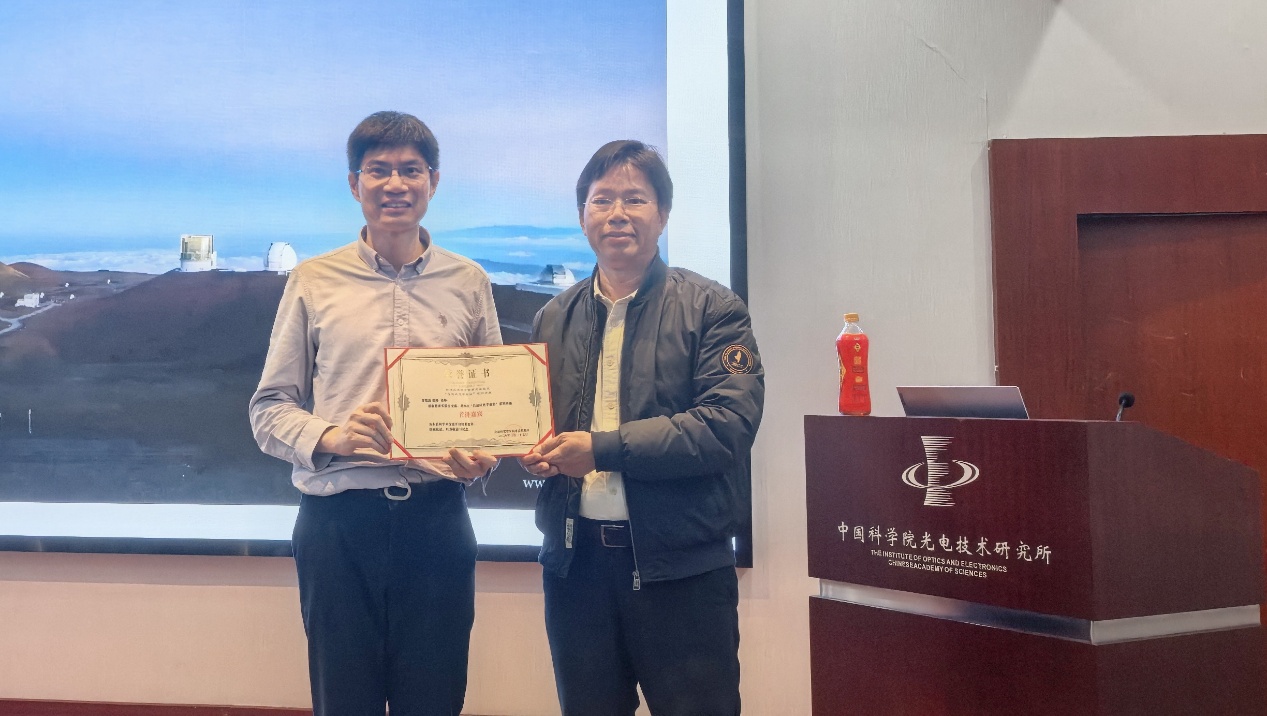 报告结束后,现场师生围绕AI驱动天文发现、大规模光谱巡天技术等议题与蔡峥副教授展开热烈讨论。饶长辉主任向蔡峥副教授颁发了“首讲嘉宾”证书,感谢他为系列讲座开启精彩序幕。